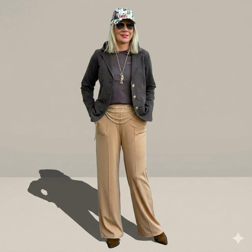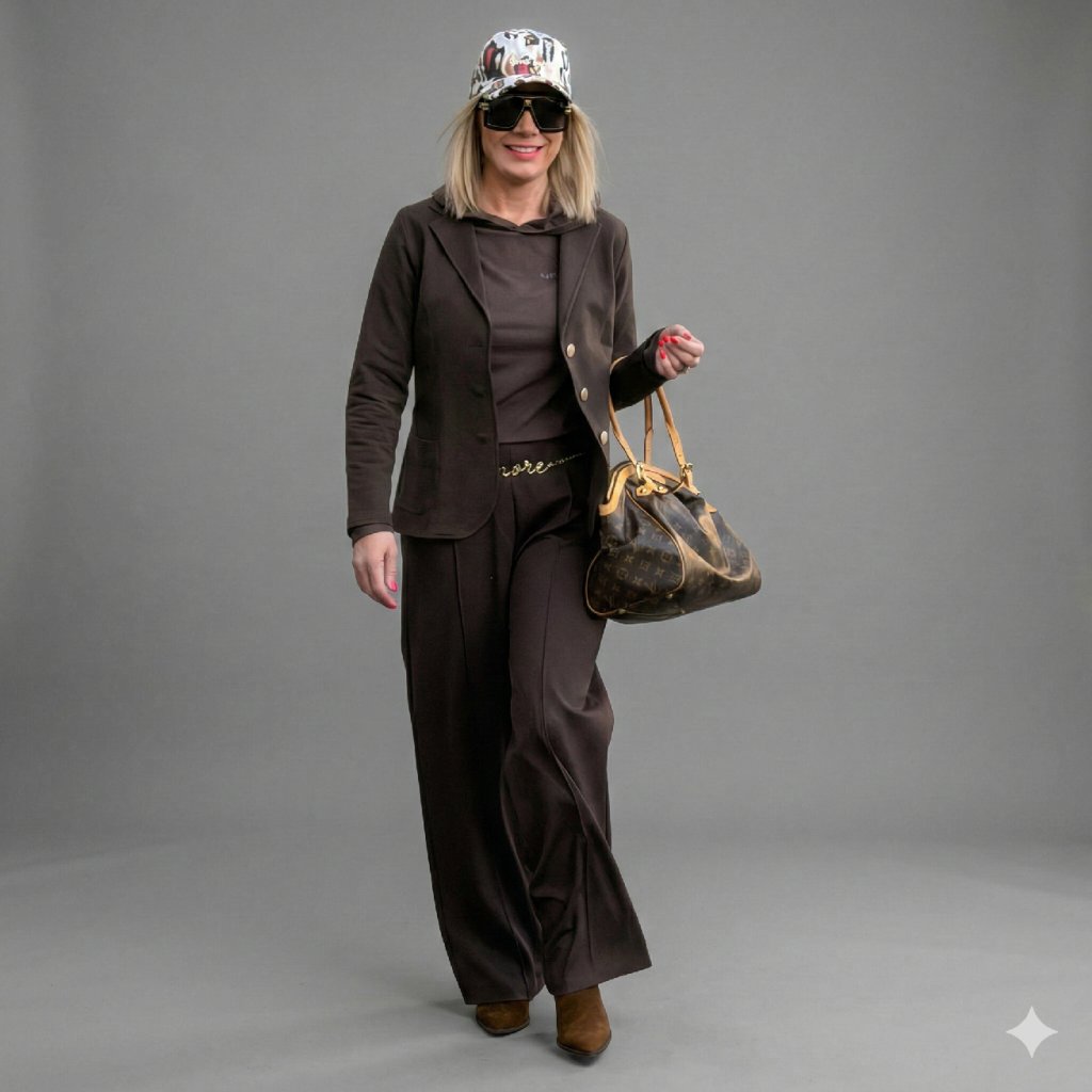 Nadčasový vizuál: Hluboký hnědý tón, který dodává outfitu hřejivý a luxusní nádech.