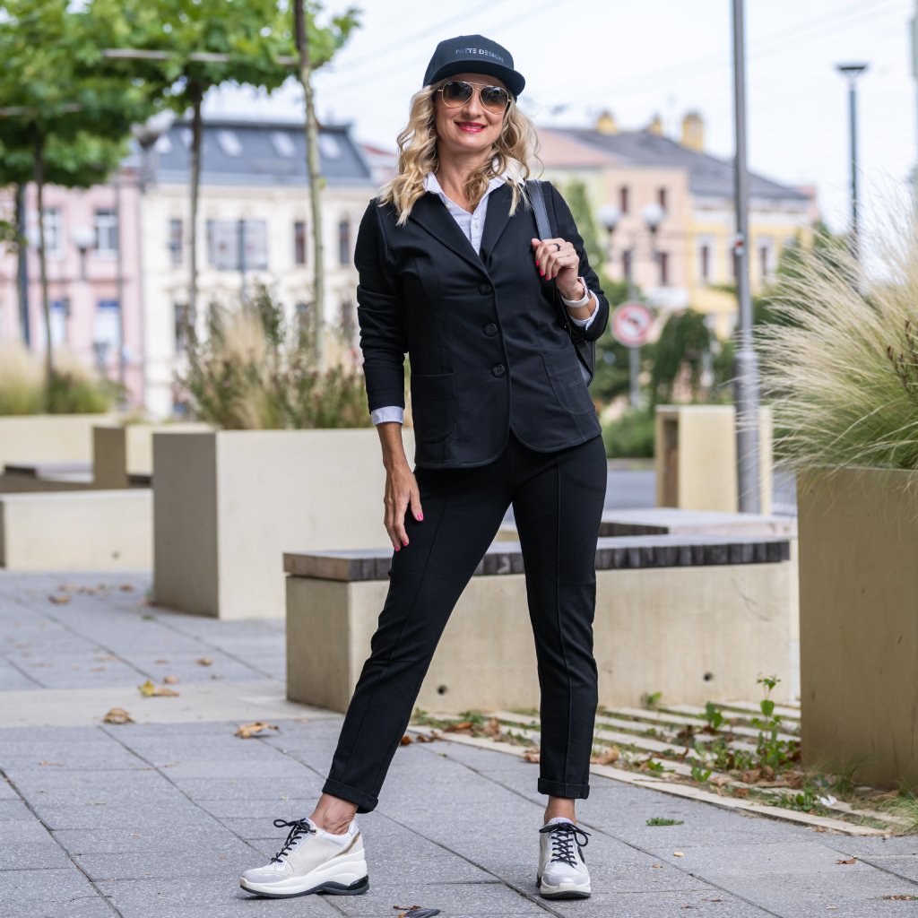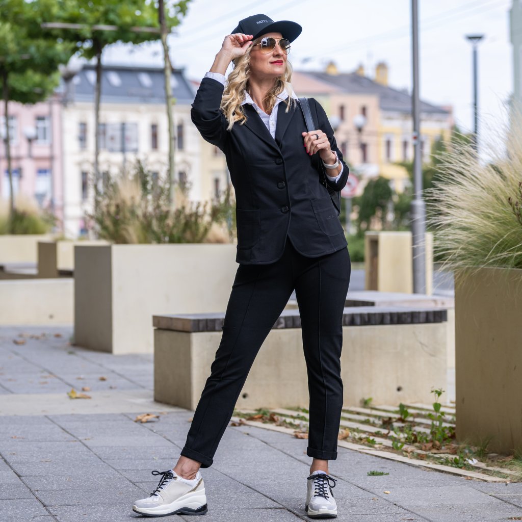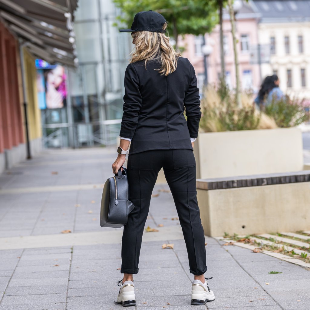 Luxusní pohodlné sako z příjemného elastického materiálu v černé barvě. Skvěle se hodí k šatům, sukni, kraťasům, ale vynikne i ke všem našim kalhotám ze stejného materiálu ;)
