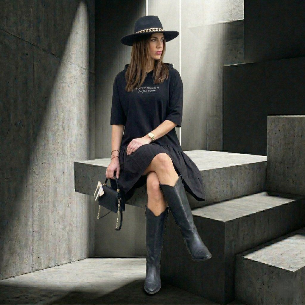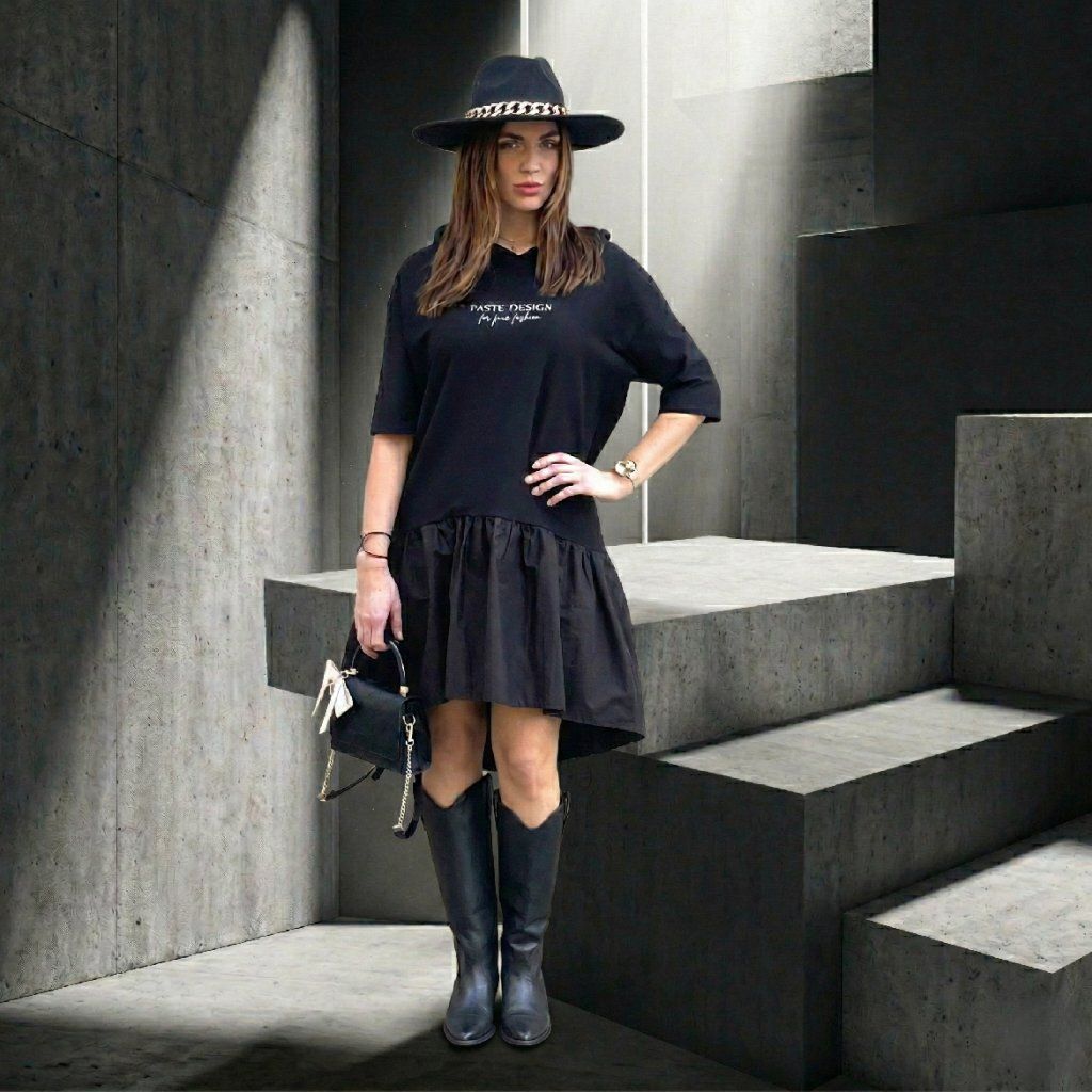 Designové šaty s kapucí Patte Frill, černé