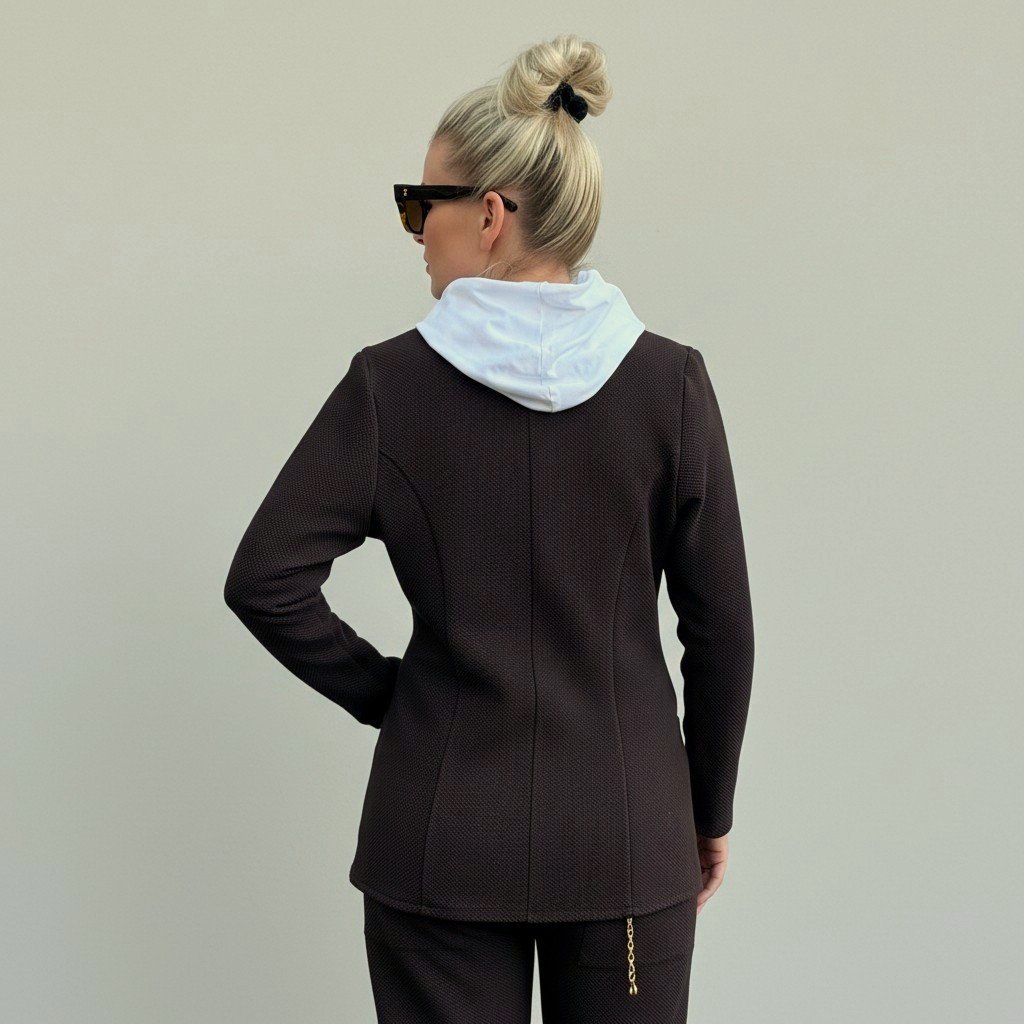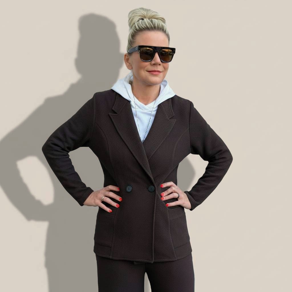 Precizní střih s důrazem na detail zvýrazňuje ženskou siluetu, zatímco strukturovaná ramena dodávají postavě potřebnou ráznost. Prémiový materiál s elastanem a jemnou strukturou zajišťuje, že se budete cítit komfortně a svěže i po celém dni stráveném na jednáních nebo cestách.