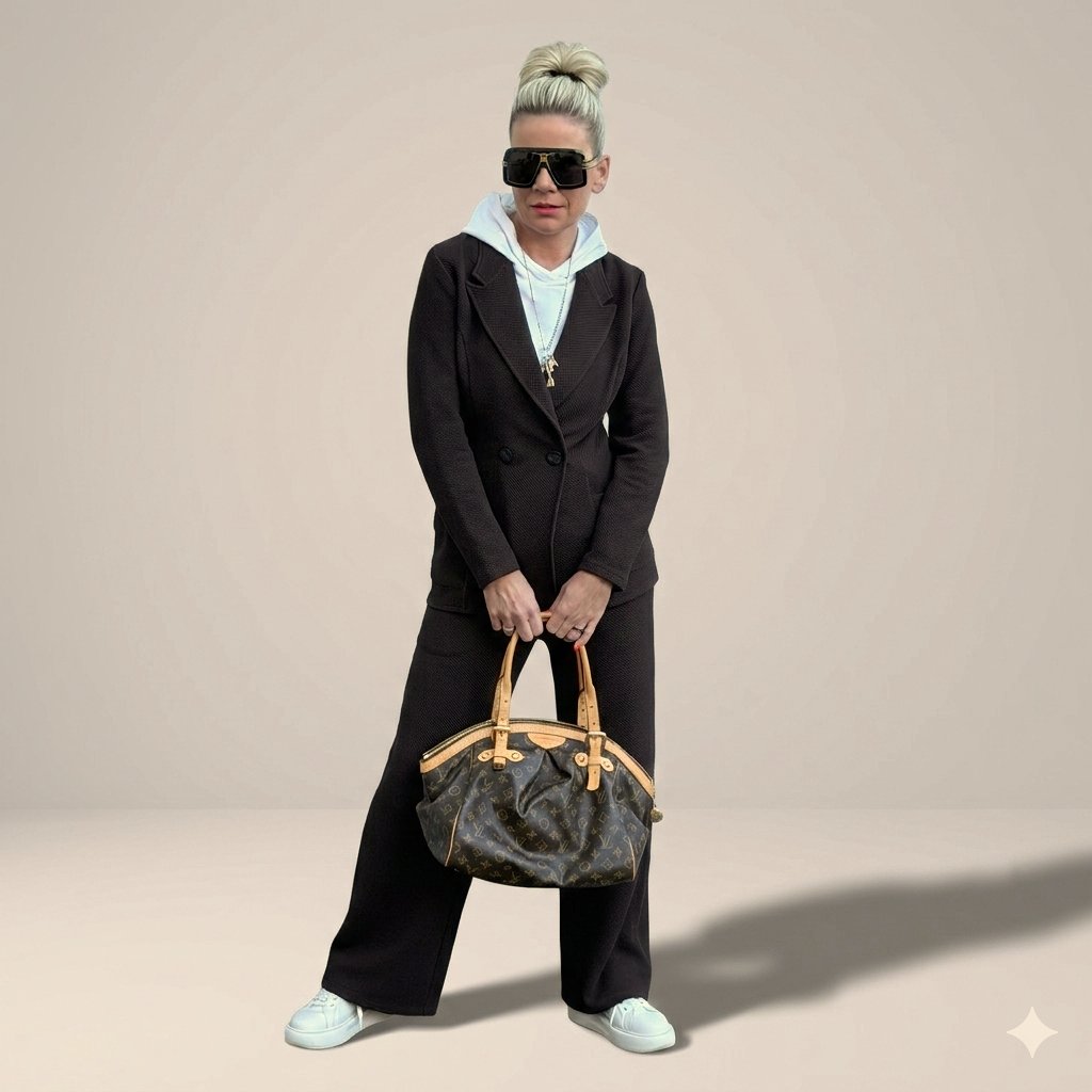 Tato kombinace vytváří moderní, svěží siluetu, která říká, že máte styl i ve chvílích, kdy zrovna nepracujete.