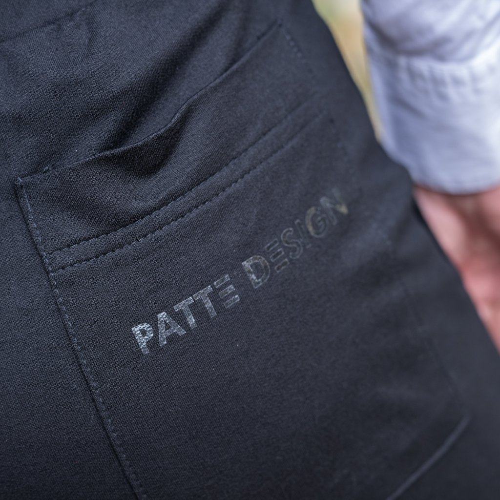 Na přední nohavici, zadní kapse i na saku najdete decentní logo Patte Design, které podtrhuje prémiový charakter modelu.